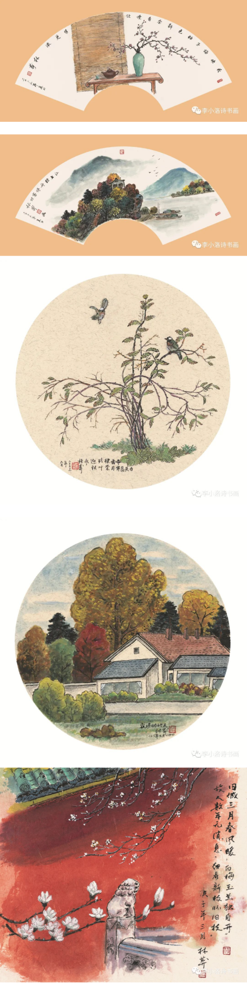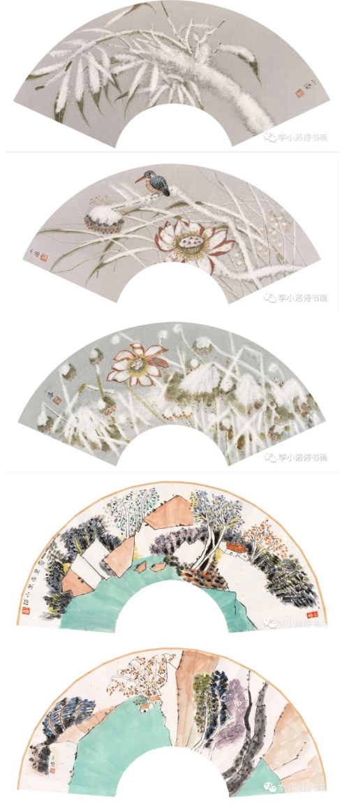 詩人寇宗鄂和林莽,均為《詩刊》編委,都曾擔(dān)任過《詩刊》的編輯部主任。寇宗鄂曾師從著名山水畫家徐北汀,詩人牛漢,詩畫兼擅。林莽作為白洋淀詩群和朦朧詩重要代表詩人,詩畫相融,桃李天下。張瑞田早年寫詩,后來多寫散文和書畫評論,是當(dāng)今活躍的評論家和書家。李木馬,李小洛,都曾參加過《詩刊》社的“青春詩會”,就讀魯迅文學(xué)院高研班,在詩歌和書畫創(chuàng)作上多年努力,取得了一定的成績……一人一格、一人一品,一扇一意、一扇一味,五位詩人作家的詩意筆墨,傳遞著各自對生活、藝術(shù)與世界的熱愛,認(rèn)知與發(fā)現(xiàn)。君子和而不同,透過一幀幀詩意盎然的扇面小品,在交相輝映的筆情墨趣中,可以看到他們相互啟迪,感染和照亮的友誼與藝術(shù)追求。