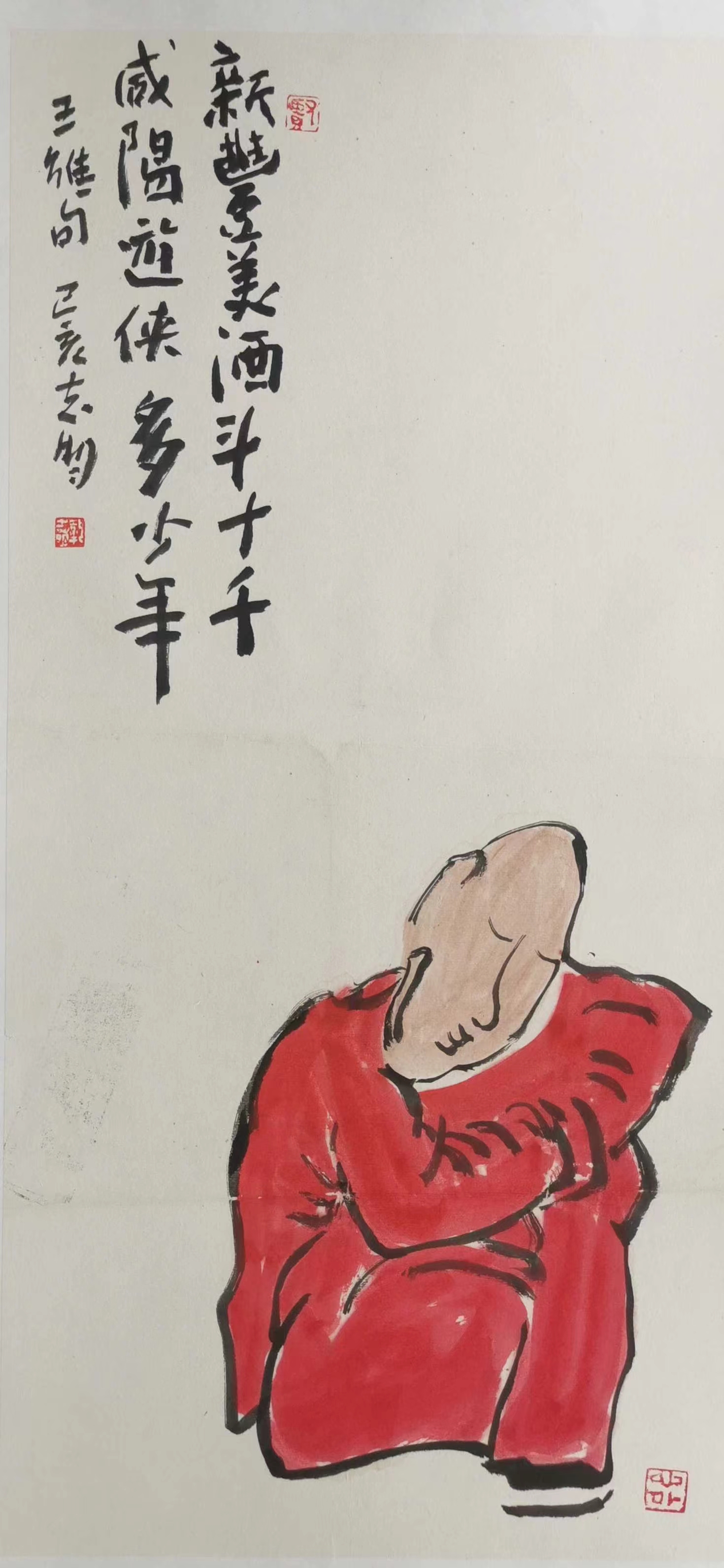 記得那一年的端午節,鞏志明發來短信,是他寫的一首詩:綠粽黃酒聚江邊,白帆紅燭祭屈原。三千清淚流不得,九萬渾念飄上天。誰有郁悶誰散淡,何謂圓滑何忠奸。十丈風塵古今在,談笑真偽化孤煙。2017年,我遷新居,鞏老師為我寄來小品畫《福到眼前》,我很喜歡,并懸掛至新居玄關。這些年,鞏志明老師常做影展畫展策劃及影評講座,自已也臨池不輟,水墨丹青,寄情抒懷,他的文人小品有思想性、有創造性。雖畫的是松風明月,小舟流水或遠古人物,但都寄托了他當下的心境,以消塊壘。誠如有人評論他為“吾師真文人,畫亦真性情!”他不僅只是身居畫室的怡情文人,他亦是心憂天下的豪俠。面對世間不平事,他也是激揚文字,揮斥方遒!在功利的當下,鞏志明尤其顯得難能可貴!