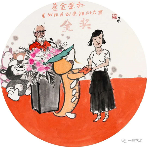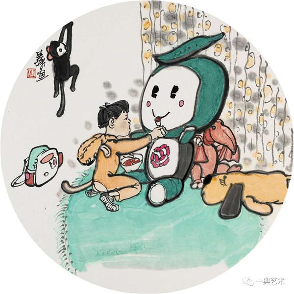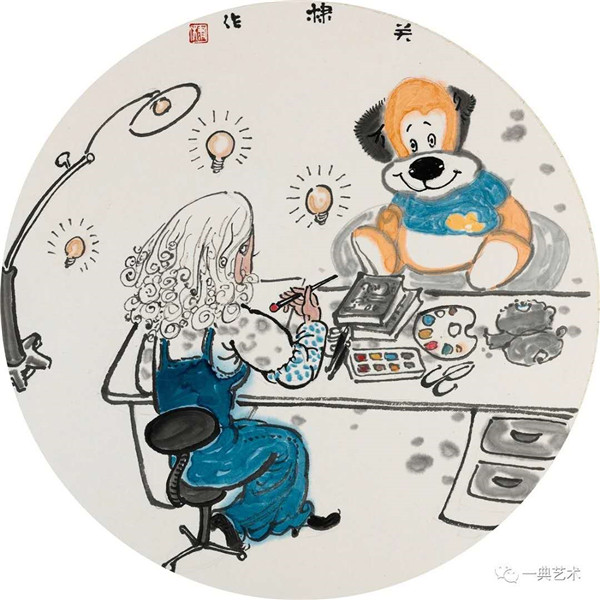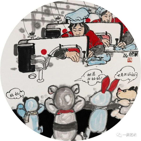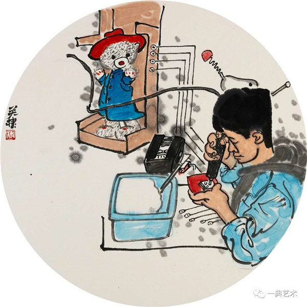 創作這個題材,我思考的內容是豐富的,表達方式是明晰的,創作沖動是豐沛的。在初期,當沒有門徑的時候,曾經請人社局根據文字資料“劃重點”,而人社局領導給了很寬泛的態度:沒有重點,只要和毛絨玩具相關。這一態度實際上解放了我的思想,放開了我的手腳:尋求有約束的自由——給以充分自由——自我追尋“有約束”的自由。好吧,自己給自己尋找方向!考察結束,創作方向已經確定:以人和毛絨玩具作為主要表現內容,以中國水(彩)墨畫為形式。在那幾天(直至今日)我頭腦里充斥著毛絨玩具和女工的形象,兩者形異神同,就像《西游記》中人神共處。因此,創作中我將人和物都以“人”的精神面貌進行刻畫,為了藝術語言的統一,將人略作夸張,并力求“以形寫神”“形神兼備”,并設定一定情節性、趣味性。實際上毛絨玩具在設計過程中,應該是運用了文學領域的比喻、比擬、夸張、類比、通感等修辭手法,這也是我在創作中經常用到的手法。我是一個中國畫家,因此作品強調中國畫的意蘊,任何時候,不忽略筆墨的表現。為了符合這個產品的特性(裝飾性、時尚性),我有意識吸取了一些水彩畫的表現語言。無論從思想上、技法上,不脫節傳統、不疏離當代。這種表現,(也許)增加了作品的藝術性。iyT安康新聞網