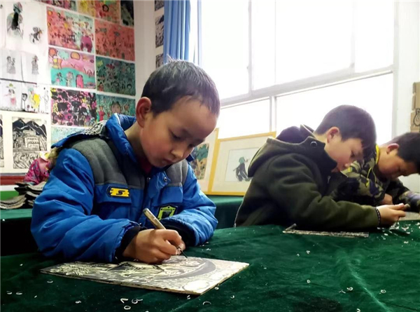 孩子們雖居窮鄉(xiāng)僻壤,卻有著走出大山的夢(mèng)想;雖多是留守兒童,卻有著與親情團(tuán)聚的渴望。他們拿畫(huà)筆、刻刀當(dāng)玩具,在紙上,在版上,揮灑情感,釋?xiě)研闹荆谑青l(xiāng)村兒童版畫(huà)便應(yīng)運(yùn)而生,這是一個(gè)值得社會(huì)關(guān)注和聚焦打造的文化現(xiàn)象。
