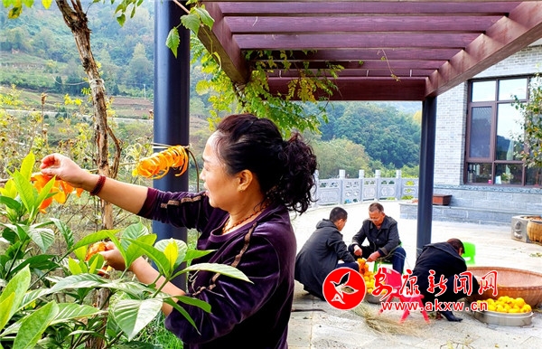 楓葉火了,柿子熟了,救兵糧紅了。旬陽縣段家河鎮李家莊村一片繁忙喜景。tYu安康新聞網